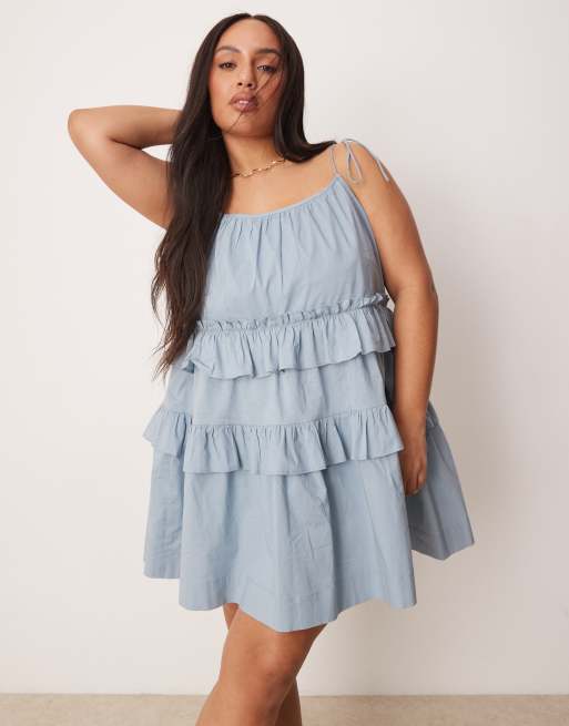 ASOS DESIGN Curve – Rökblå, panelsydd miniklänning med volanger