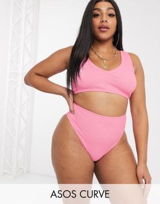 ASOS DESIGN Curve – Rosa krinklad bikini