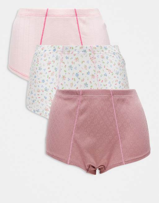 ASOS DESIGN Curve – Rosa, pointellestickade och småblommiga boxershorts, 3-pack
