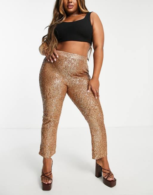 ASOS DESIGN Curve – Roséguldfärgade, utsvängda jerseybyxor med paljetter