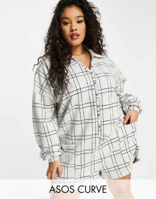 ASOS DESIGN Curve – Rutig playsuit med knäppning framtill i dra på-stil