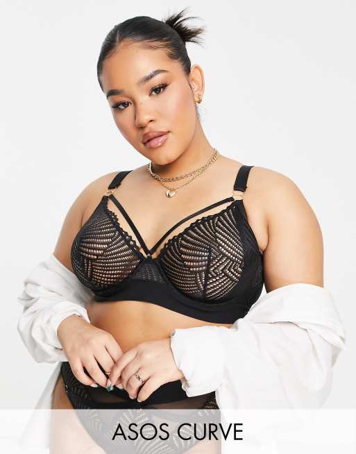 ASOS DESIGN Curve – Samantha – Svart bygelbehå med geometriskt mönstrad spets