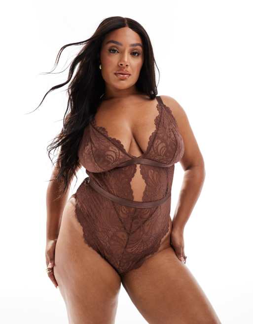ASOS DESIGN Curve – Sienna – Brun mjuk body i spets