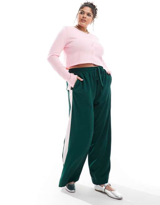 ASOS DESIGN Curve – Skogsgröna byxor med elastisk midja och kontrasterande panel