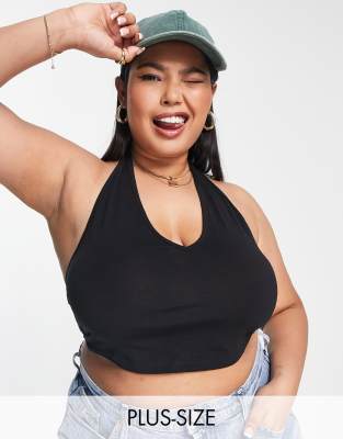 ASOS DESIGN Curve – Svart crop top med halterneck