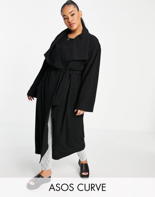 ASOS DESIGN Curve – Svart dusterkappa med vattenfallskrage
