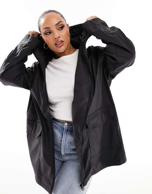 ASOS DESIGN Curve – Svart, gummerad regnkappa