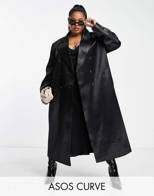 ASOS DESIGN Curve – Svart kappa i dad-modell av satin