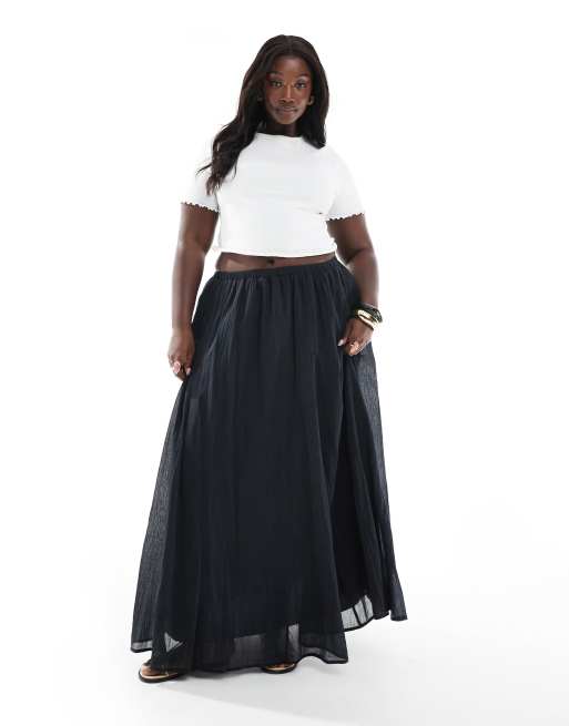 ASOS DESIGN Curve – Svart, klockad maxikjol i bomull