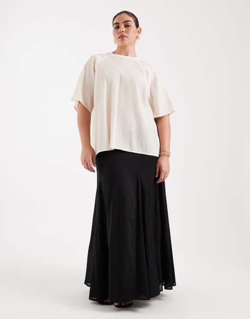 ASOS DESIGN Curve – Svart, klockad maxikjol i bomull