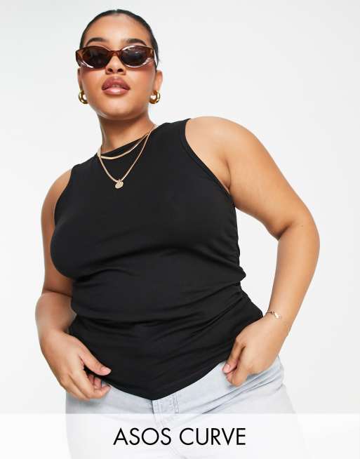 ASOS DESIGN Curve – Svart linne med rysch på sidan