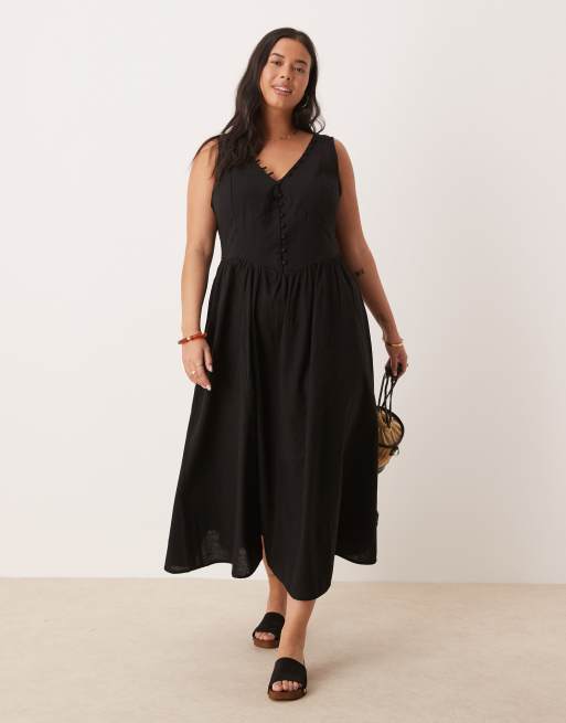 ASOS DESIGN Curve – Svart maxiklänning med v-ringning, knäppning och låg midja