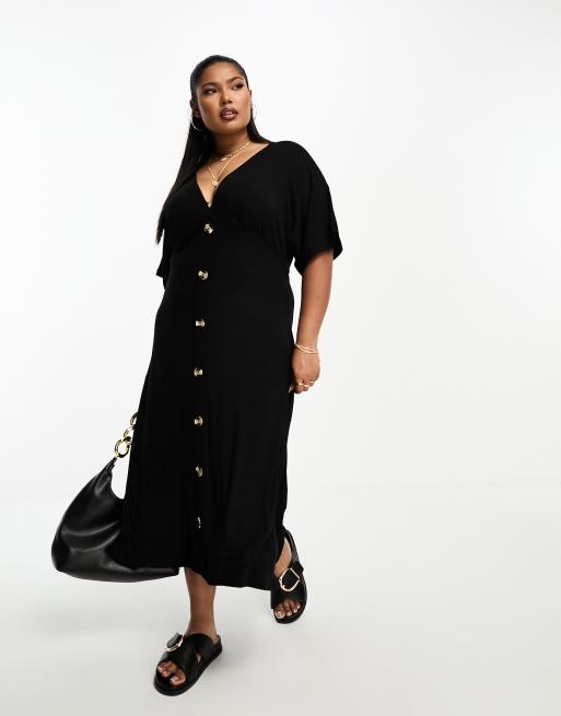 ASOS DESIGN Curve – Svart mini-teaklänning med knappar och utsvängda ärmar