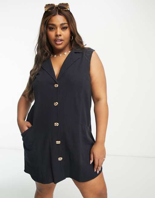 ASOS DESIGN Curve – Svart miniklänning med kostymväststil