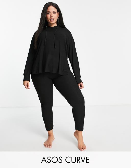 ASOS DESIGN Curve – Svart mysset i supermjukt ribbat material med oversized huvtröja med slitsar och leggings