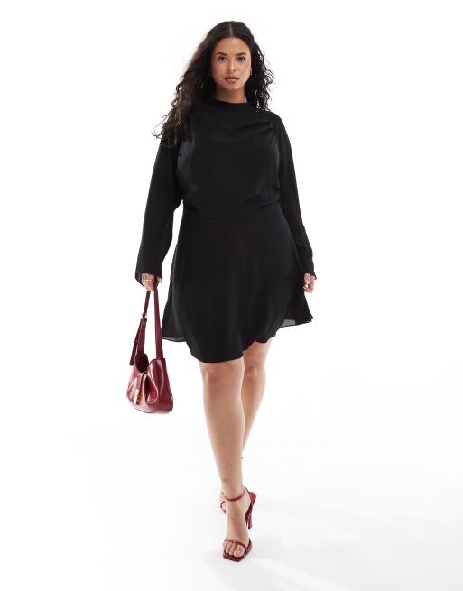 ASOS DESIGN Curve – Svart tea-klänning i minilängd med hög ringning