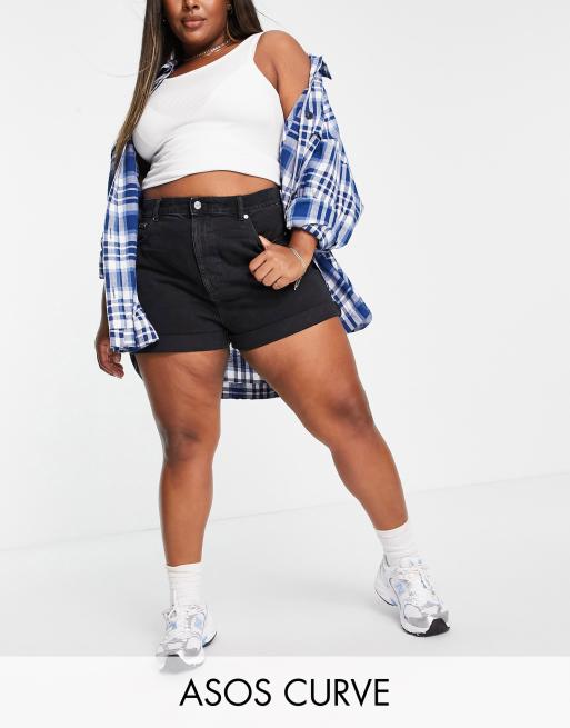 ASOS DESIGN Curve – Svarta jeansshorts i en slouchy mom-modell med hög midja och tvättad finish