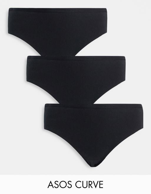 ASOS DESIGN Curve – Svarta ribbade trosor, 3-pack