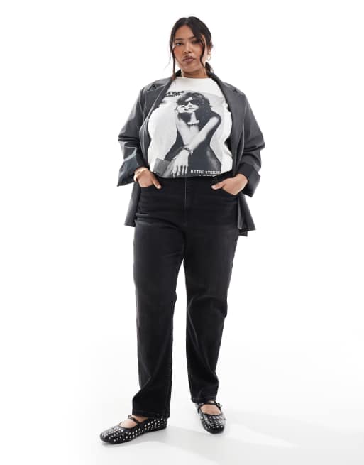 ASOS DESIGN Curve – Svarttvättade, bekväma jeans i smal passform