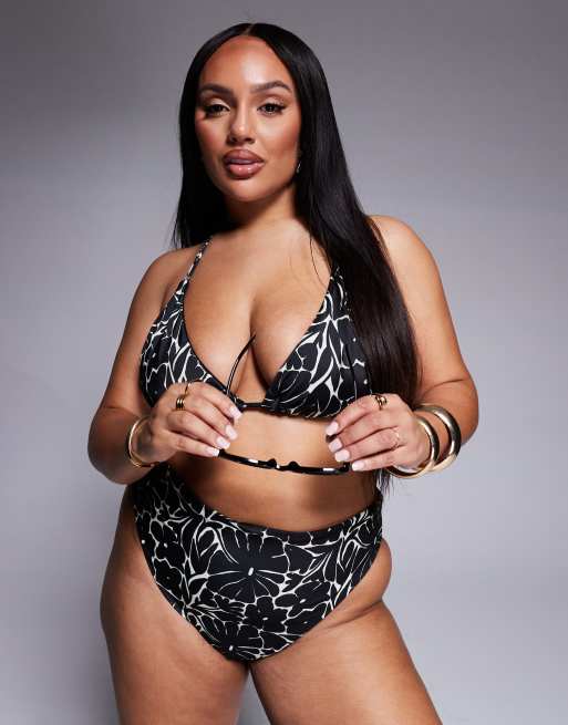 ASOS DESIGN Curve – Svartvit, blommig bikini