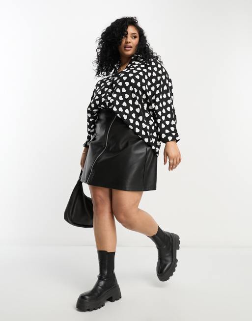 ASOS DESIGN Curve – Svartvit, hjärtmönstrad skjorta i oversize med långa ärmar