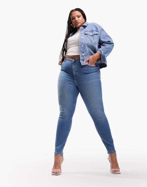 ASOS DESIGN Curve – Ultimate – Mellanblå smala jeans