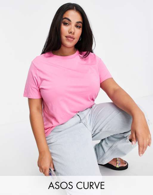 ASOS DESIGN Curve – Ultimate – Rosa t-shirt i bomull med rund halsringning – PINK