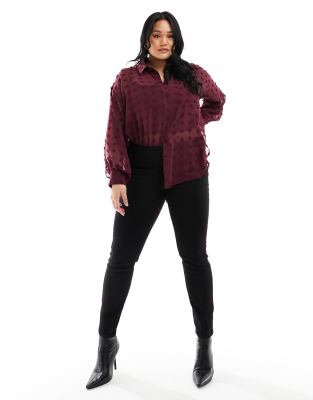 ASOS DESIGN Curve – Vinröd oversize skjorta i dobbyväv