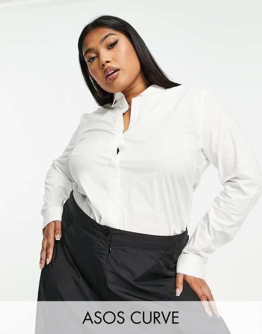 ASOS DESIGN Curve – Vit figursydd bomullsskjorta med lång ärm och stretch