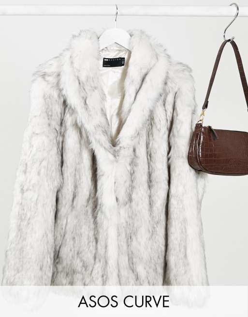 ASOS DESIGN Curve – Vit kappa med ståkrage i fuskpäls