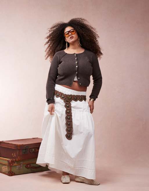 ASOS DESIGN Curve – Vit maxikjol i bohostil med broderad nederkant