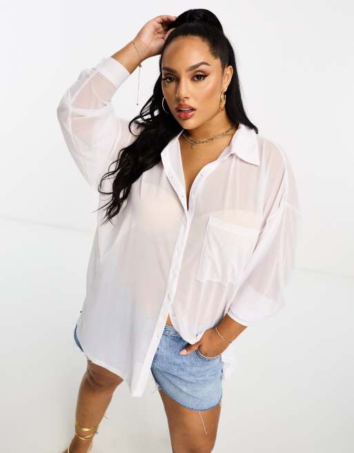 ASOS DESIGN Curve – Vit skjorta i oversize och mesh