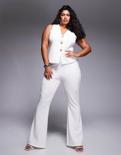 ASOS DESIGN Curve – Vita, ribbade, utsvängda byxor, del av set