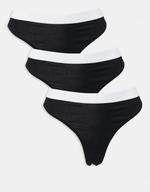 ASOS DESIGN – Lillie – Svarta stringtrosor i bomull med midjeband, 3-pack