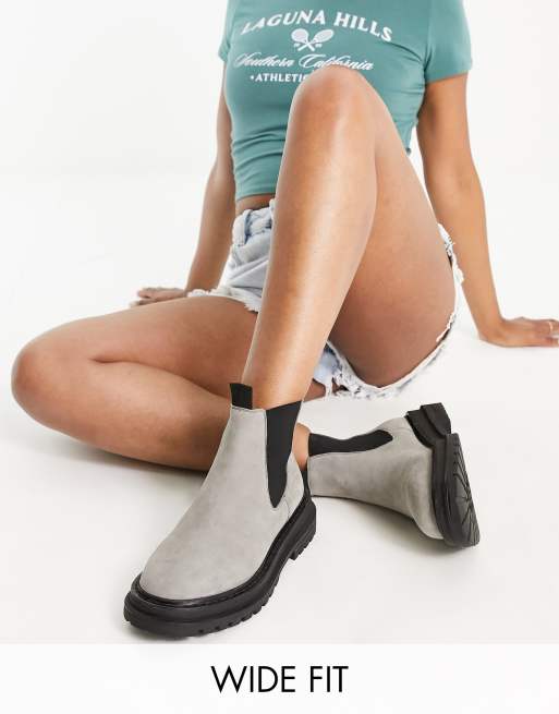 ASOS DESIGN – Appreciate – Grå chelseaboots av mocka med bred passform