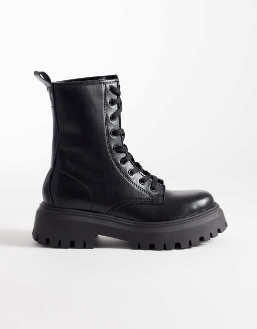 ASOS DESIGN – Ava – Svarta, platta boots med snörning och bred passform