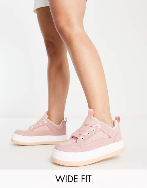 ASOS DESIGN – Dakota – Puderrosa sneakers i skaterstil med breda knytband och bred passform