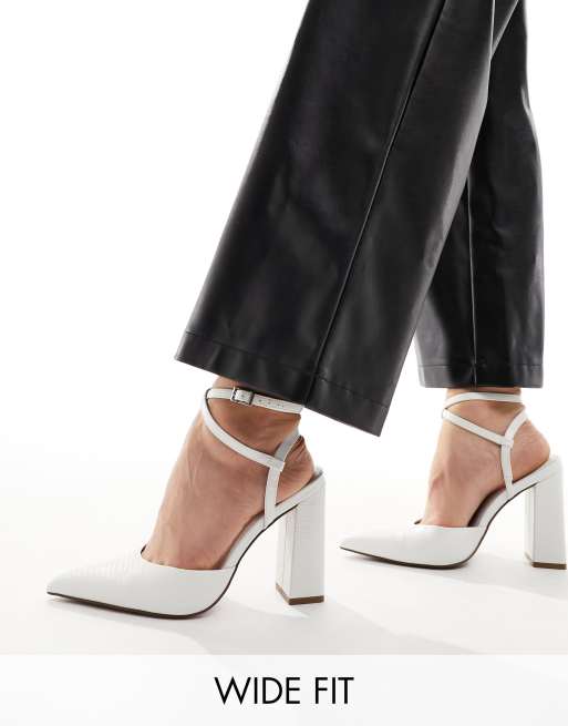 ASOS DESIGN – Paige – Vita, ödleskinnsmönstrade skor med hög blockklack och bred passform