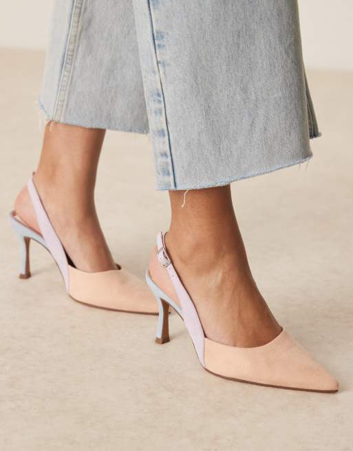 ASOS DESIGN – Samber – Flerfärgade skor i mockaimitation med stilettklackar, bred passform och hälrem