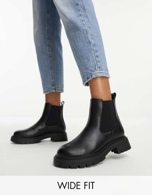 ASOS DESIGN Wide Fit – Adjust – Svarta, grova chelseaboots
