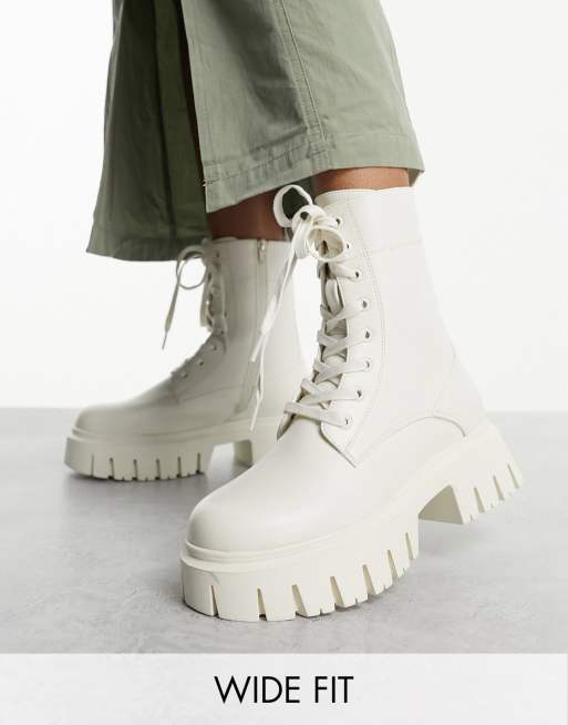 ASOS DESIGN Wide Fit – Anchor – Naturvita, grova boots med snörning