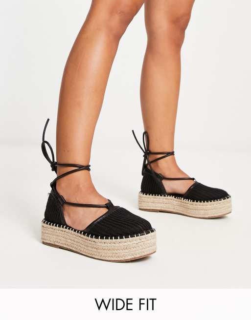 ASOS DESIGN Wide Fit – Juggle – Svarta platå-espadrillos