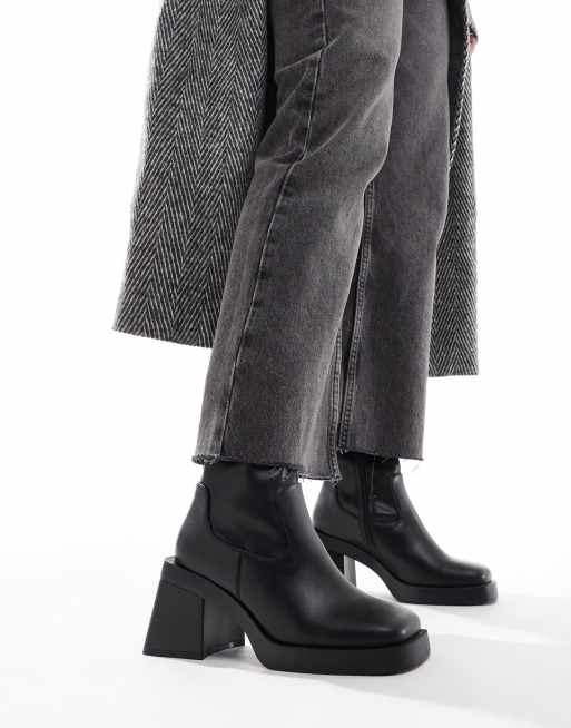 ASOS DESIGN Wide Fit – Rome – Svarta, halvhöga platåboots med fyrkantig tå