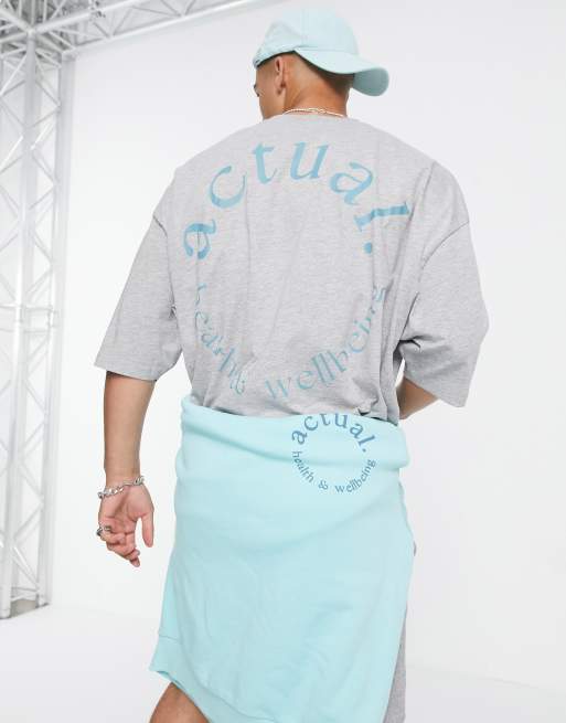 ASOS – Actual Athleisure – Gråmelerad t-shirt i oversize med stor "health and wellbeing"-logga baktill