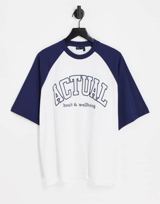ASOS Actual – Flerfärgad t-shirt i oversize med broderad logga framtill