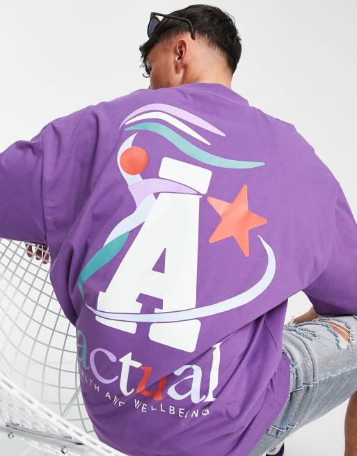 ASOS Actual – Lila t-shirt i oversize med stor logga baktill