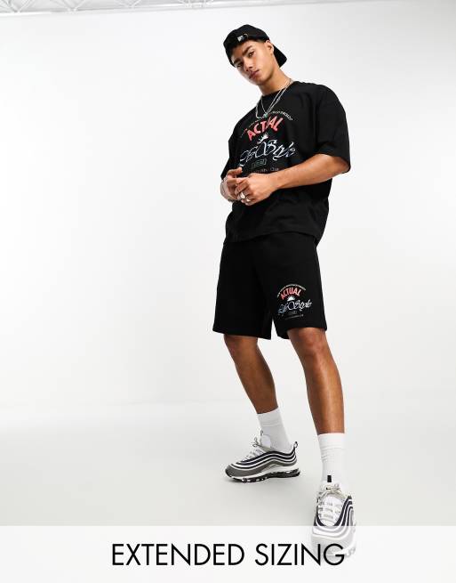 ASOS Actual – Svarta, avslappnade shorts med flerfärgad "Life Style"-logga, del av set