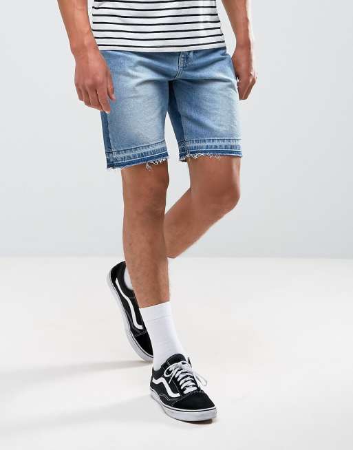 ASOS – Blå jeansshorts med smal passform och panelsydd konstruktion
