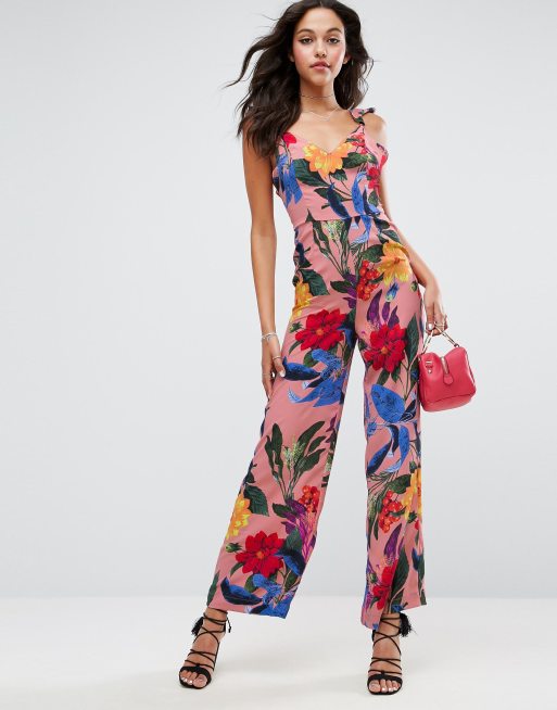 ASOS – Blommig jumpsuit med volanger och knytning baktill