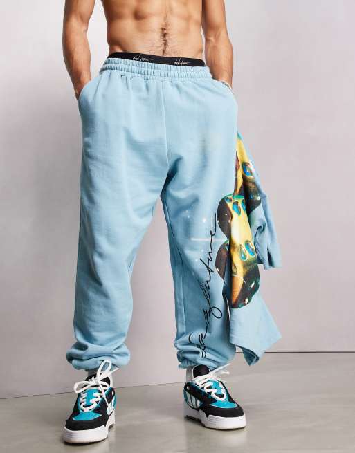 ASOS – Dark Future – Blå avslappnade mjukisbyxor med tärningstryck och logga, del av set